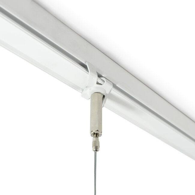 Avec le kit de suspension pour rails, il est possible de suspendre les rails électriques au plafond au moyen de câbles en acier. Le câble de ce produit est long de 5 mètres. Vous pouvez déterminer à quelle hauteur vous souhaitez suspendre les rails en réglant la hauteur. Veuillez noter que 2 câbles sont nécessaires pour suspendre un rail proprement.